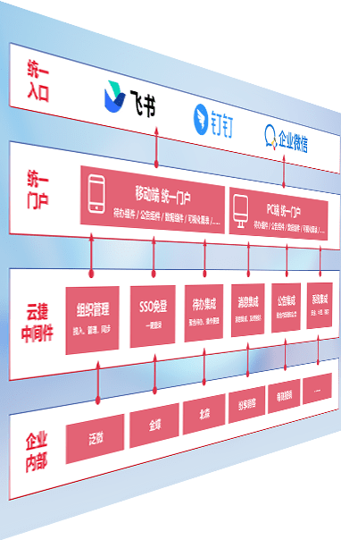 对协作平台提供支持服务,,,支持企业应用与协作平台对接,,包含组织同步、、、消息集成、、、待办集成等。。。支持目前主流的协作平台:钉钉、、企微和飞书。。